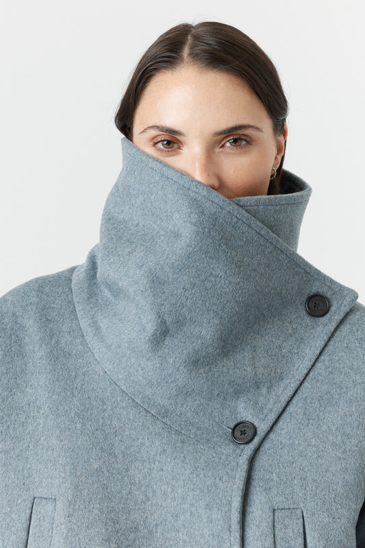 Manteau d’hiver asymétrique mi-long semi ajusté femme en 100% laine – Desloups #DLF-003