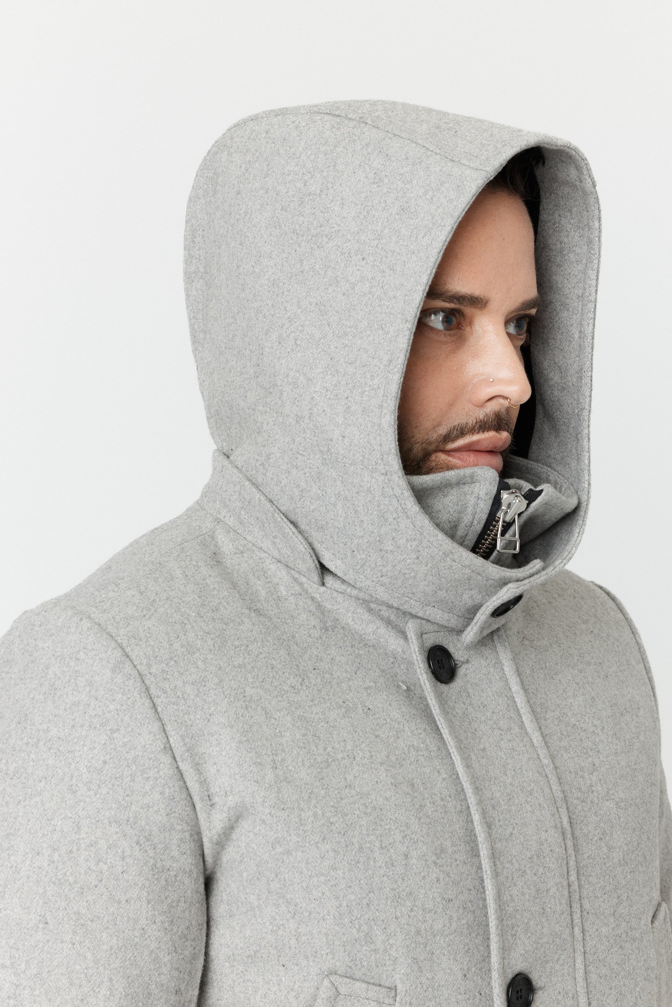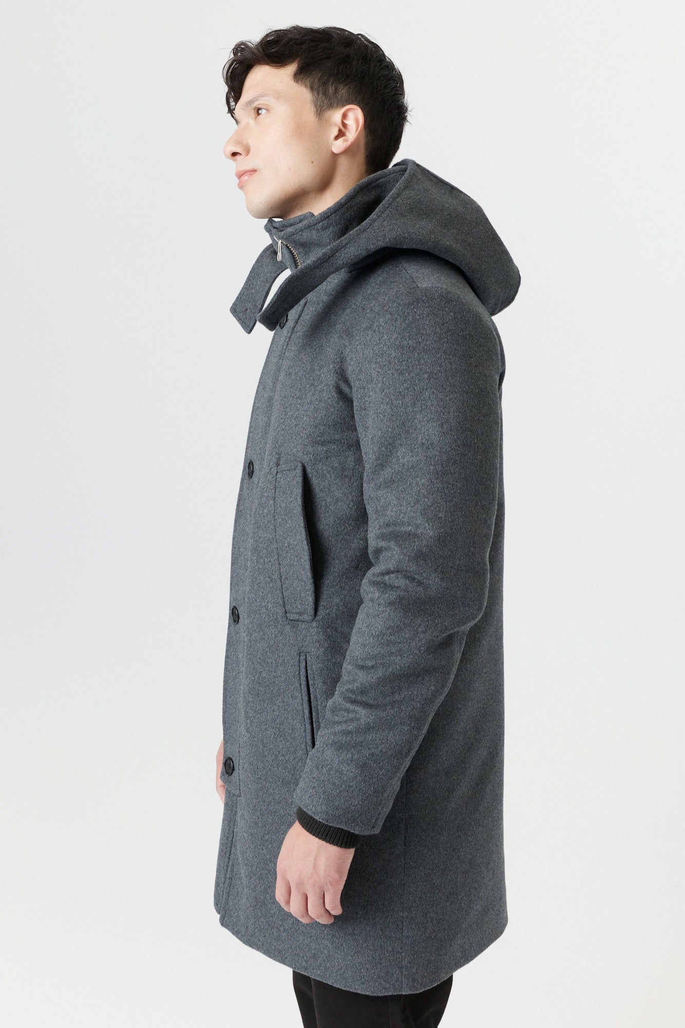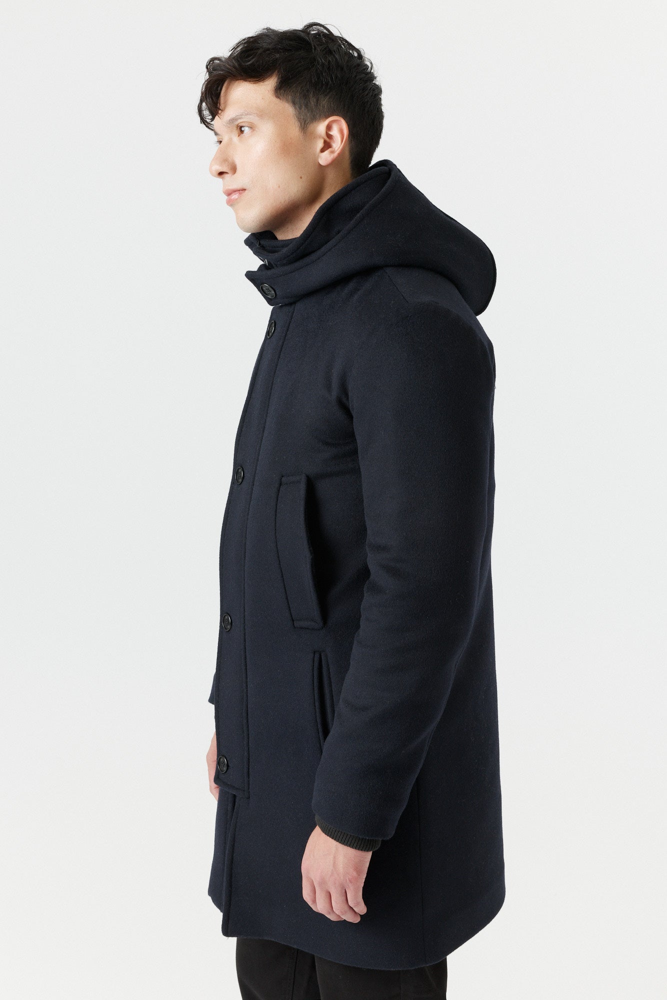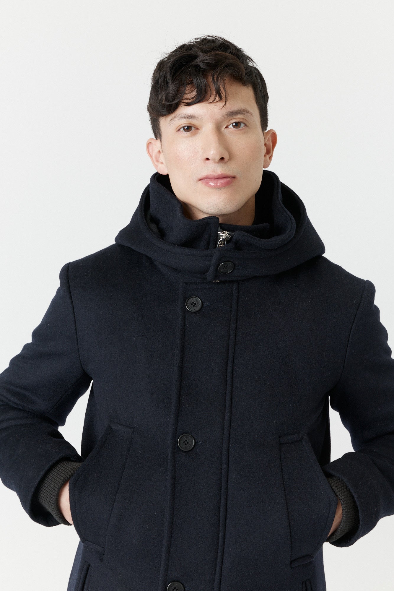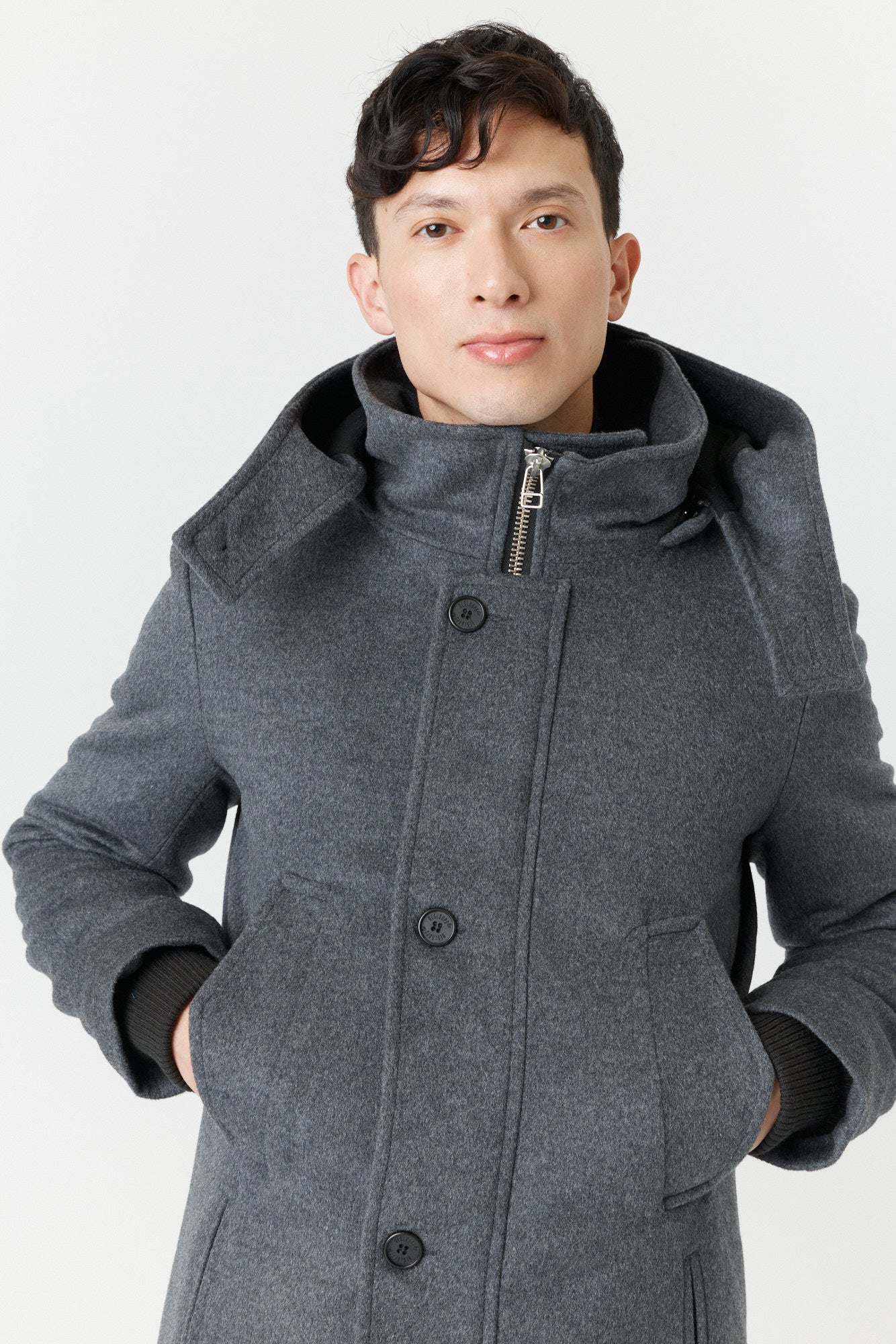 Desloups Canadian winter coat for men with clasp and hood in 100% lined wool