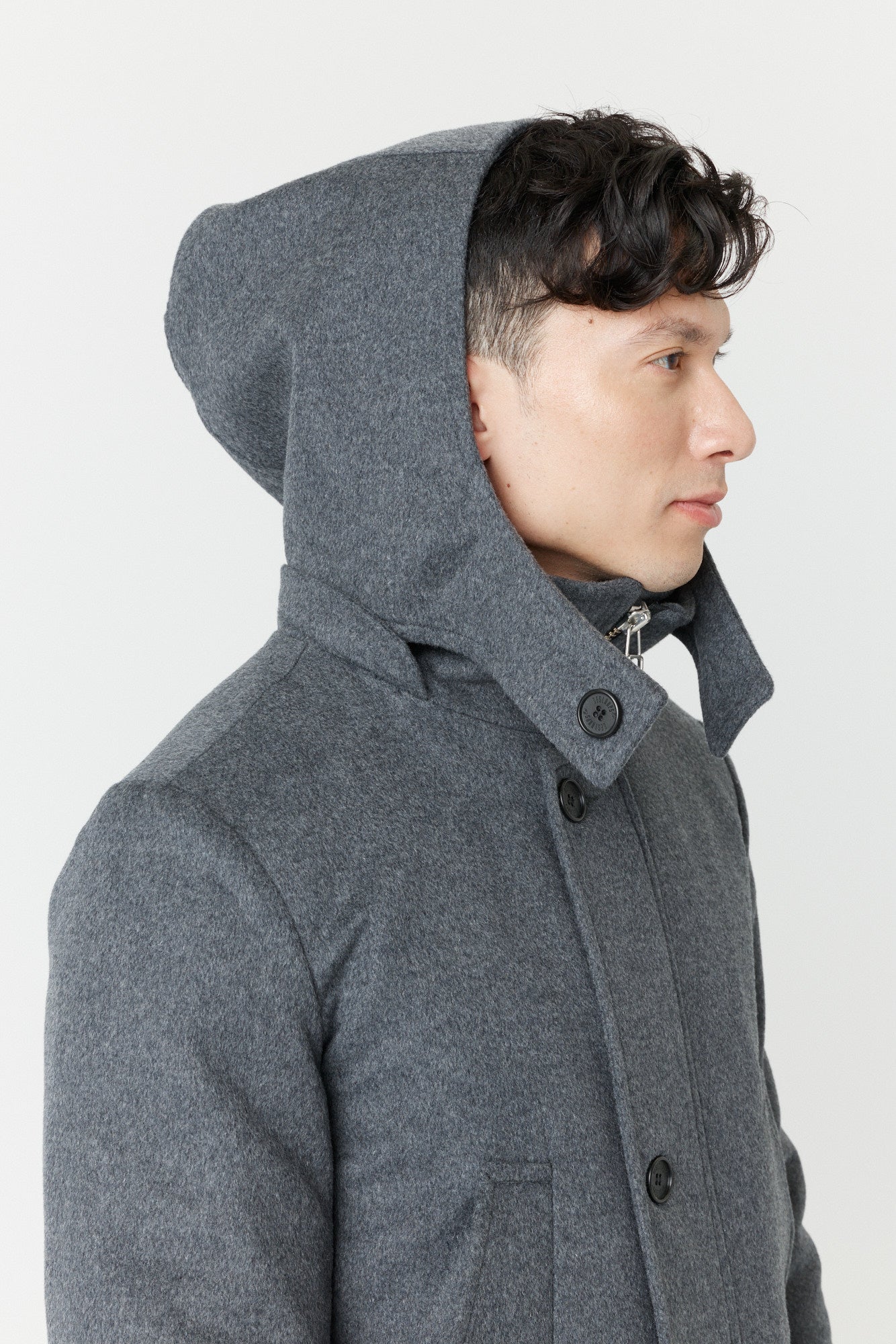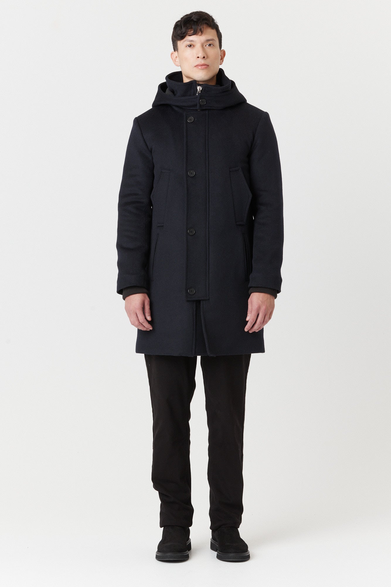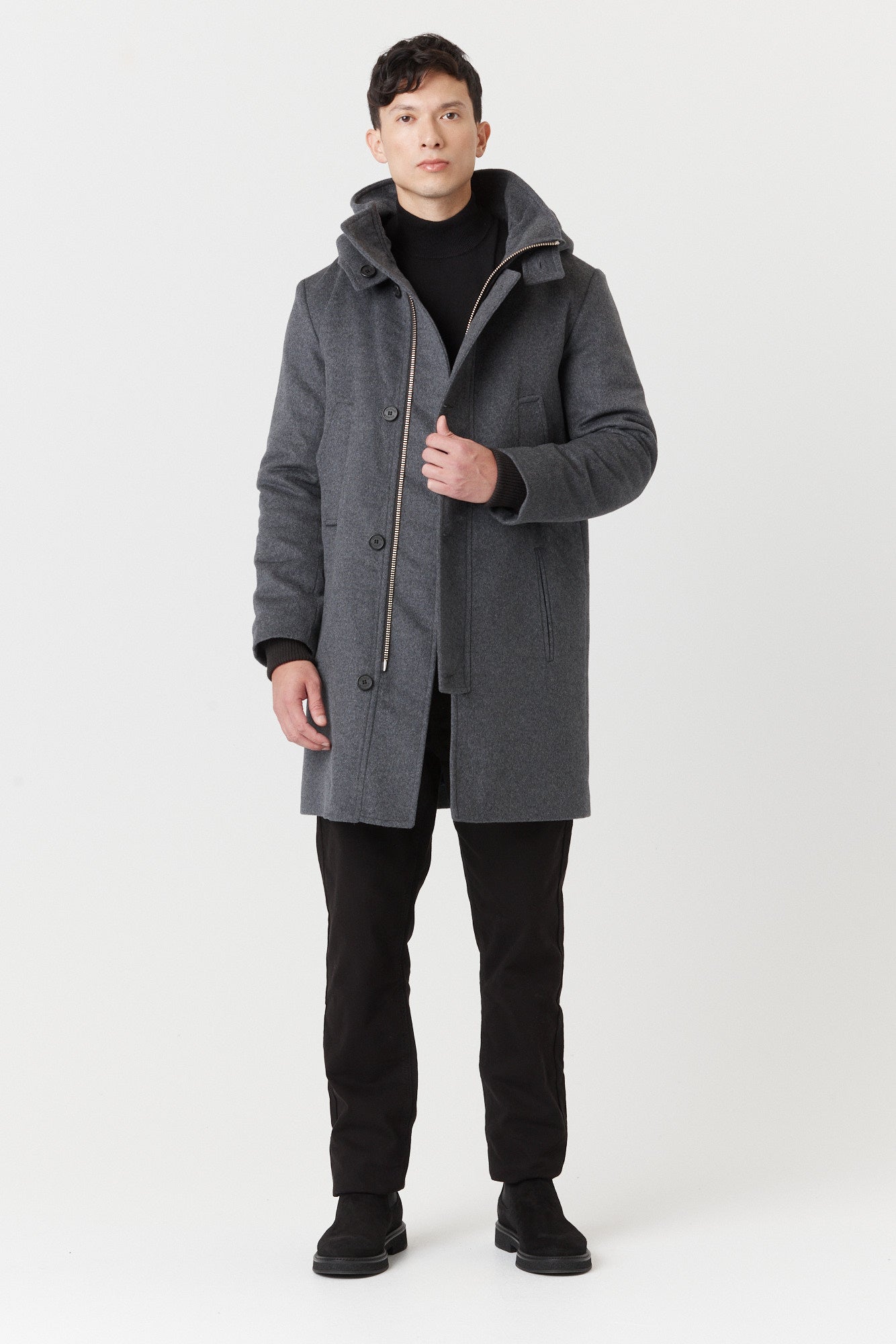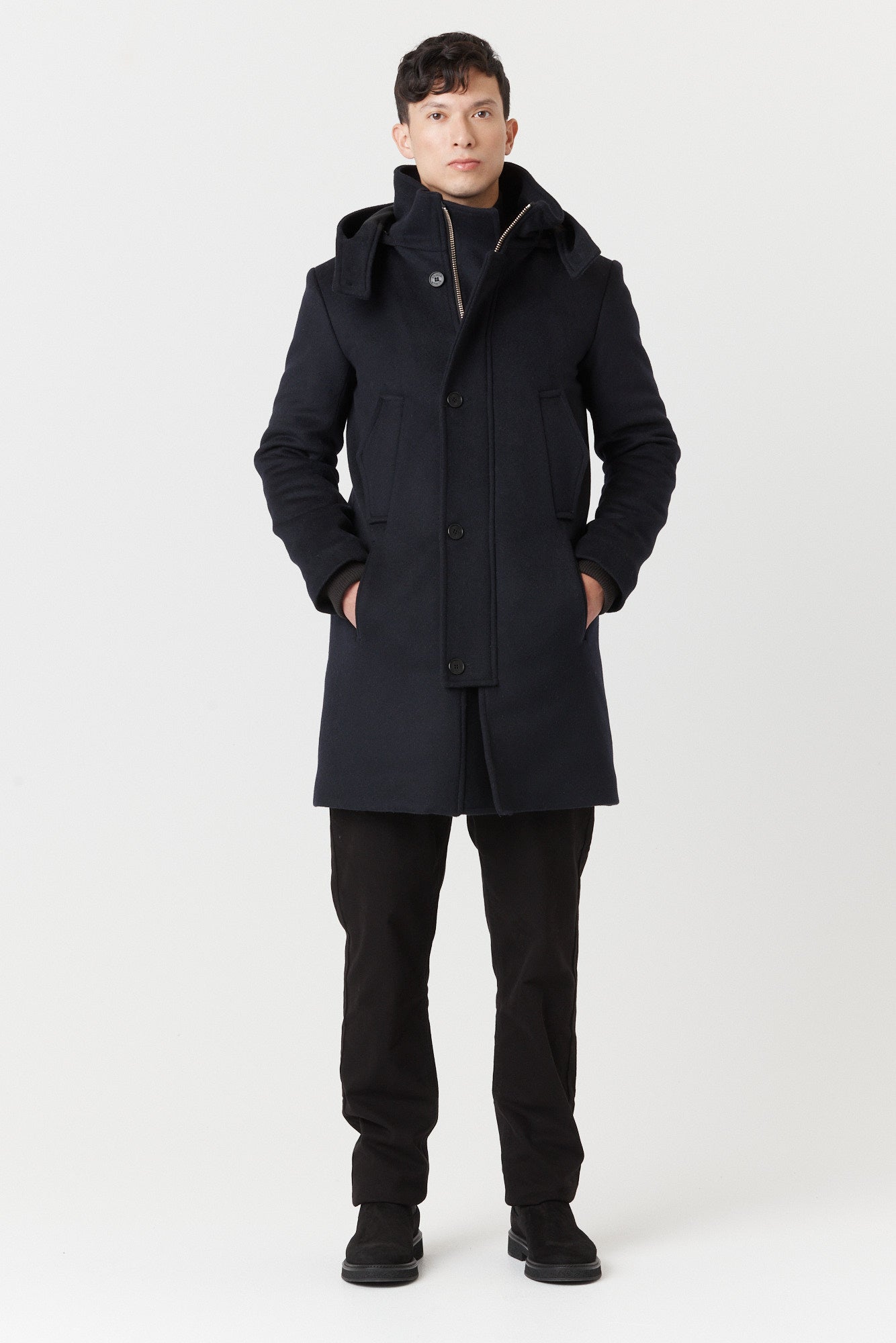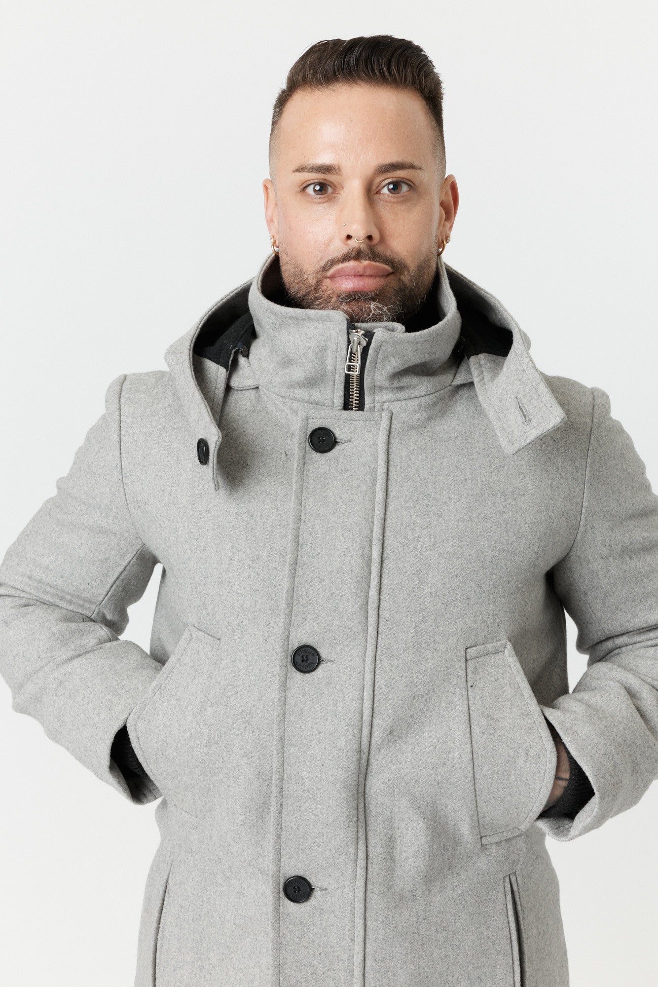 Desloups Canadian winter coat for men with clasp and hood in 100% lined wool