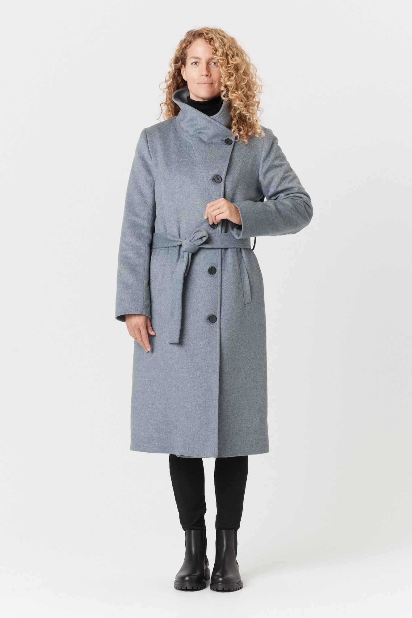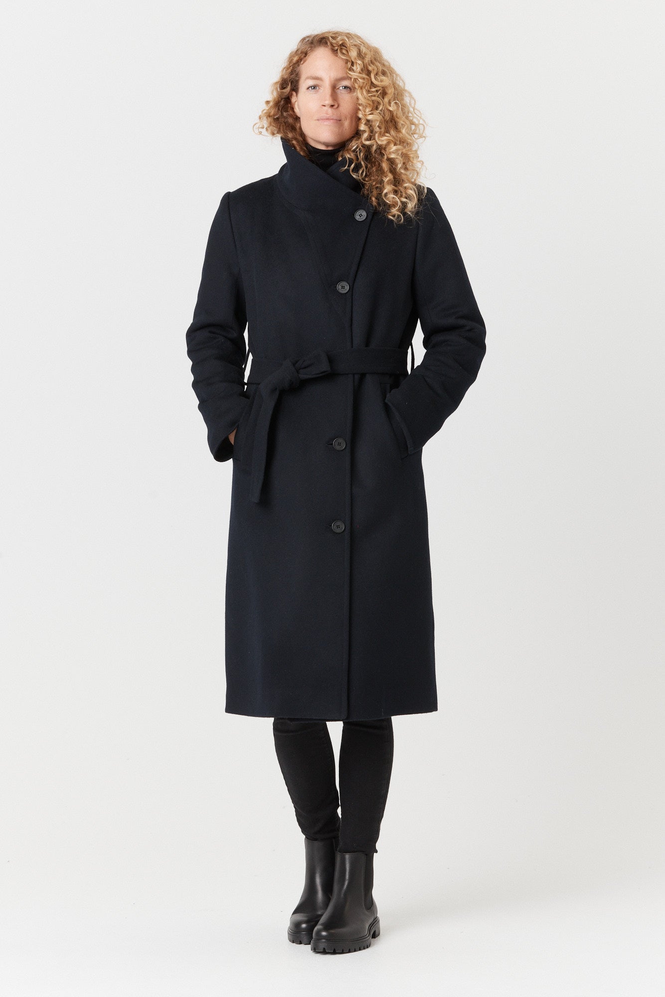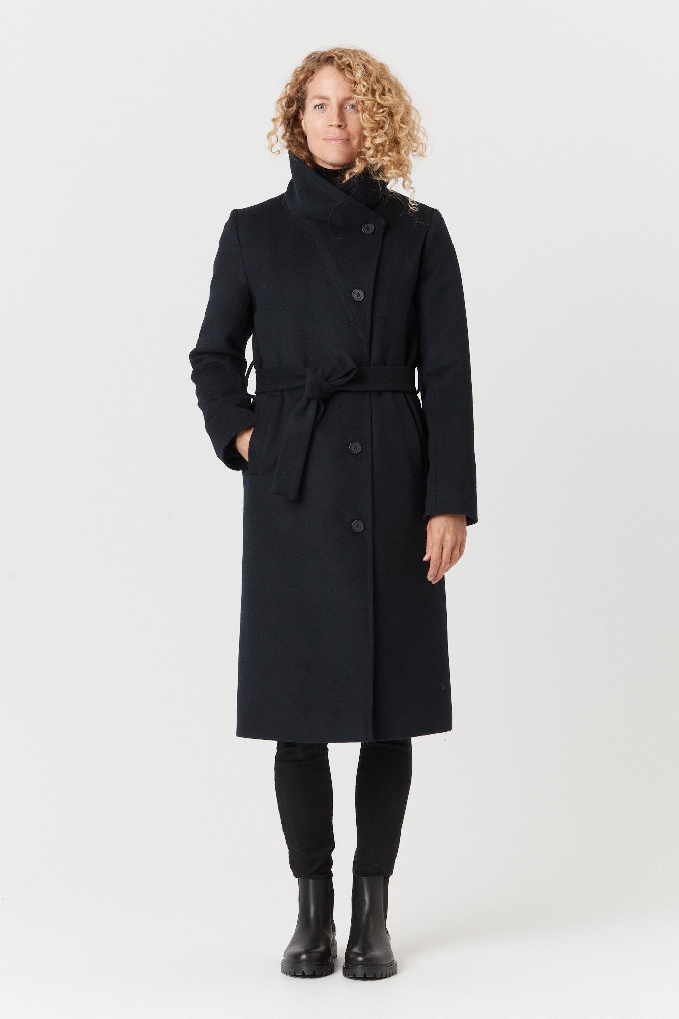 Desloups manteau d'hiver long femme avec ceinture en 100% laine et doublé #DLF-008